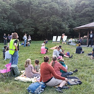 After the talks had finished 13 bat monitors were distributed between the 60 attendees and everyone waited quietly for the bats to appear. We were not disappointed because just half an hour after sunset the monitors picked up the bat movements by making a splatty popcorny sound. As the bats flew over the Log Hauler Site each monitor picked up the sound. Not only could we hear them on the monitors but could see their zig zaggy flight. They are very small (only 20cm wingspan and their bodies are only as long as a pinky finger) but it was possible to see them clearly against the evening sky.